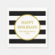 Joyeuses serviettes de Noël pour la saison des Fêtes avec rayures noir et blanc motif avec détails or, personnalisable avec votre propre texte.