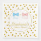 Le genre de confetti d'or révèle des serviettes en papier. Le design comprend un motif confetti et un cercle blanc au milieu avec une cravate arc bleu et un arc rose avec votre texte personnalisé.