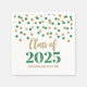 Serviettes de graduation personnalisables pour classe de 2025 avec motif glamour or et confetti vert.