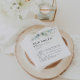 Complimentez votre événement mariage classique avec ce feuille vert or trivia faits amusants mariages serviettes. Le design présente d'élégants feuilles d'eucalyptus dorés et verts à l'aquarelle.