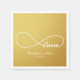 Set de serviettes en papier Gold Love Infinity Wedding Party, simple, élégant et classique. Idéal pour les mariages, les douches nuptiales, les dîners de répétition mariages et les anniversaires de mariages. Customisez le texte correspondant à vos besoins de fête. Vous pouvez customiser la couleur noire de l'arrière - plan.
