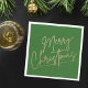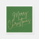 Merry Christmas text in chic fancy lettering in gold faux foil is featured on green holiday paper napkins. MATCHING paper plates and more in our store.