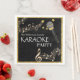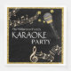 Ces serviettes personnalisées ont un thème karaoké glamour sur un arrière - plan noir. Une image de microphone est placée en haut à droite, avec des notes de musique dorée imprimées autour des côtés. Un cadre de parties scintillant en or borde la serviette.