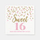 Serviettes personnalisables pour une fête de 16 ans sucrée avec parties scintillant or et confetti rose.
