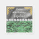 Une élégante serviette d'anniversaire Surprise, en or et en argent. Parties scintillant vert clair Zebra imprimé décoré de diamants brillants.