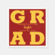 GRAD en or jaune gras, le lettrage remplit les coins de ces serviettes cardinales rouges arrière - plans de cérémonie de remise des diplômes. Félicitations au-dessus du nom de votre diplômé et de la classe de ci-dessous. CORRESPONDRE des articles dans notre magasin.