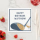 Create personalized napkins for birthday parties and more when you add your own custom text to these party napkins. They features my realistic style illustration of a golf club and a golf ball in shades of blue and gold with your custom message above in coordinating navy blue lettering.