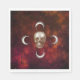 Illustration du crâne vintage Goth Magik avec quatre lunes d'argent sur arrière - plan céleste rouge.