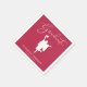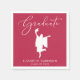 Serviettes rouges magenta personnalisées pour sa fête de remise des diplômes avec l'illustration d'une diplômée célébrant dans son casquette et sa robe, "Graduate" dans un élégant script blanc et son nom et année de classe dans une simple typographie blanche.