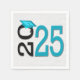 Serviette En Papier Graduation 2025 Turquoise et noir sur bois