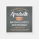 Ajoutez une touche personnalisée élégante aux décorations de la fête de remise des diplômes de l'université ou du secondaire avec des serviettes en papier gris, blanc et cuivre personnalisées. Tout le texte est simple à customiser. Le design est composé d'un arrière - plan gris et sombre, d'un casquette de tableau de mortier imitation feuille, d'une typographie moderne élégante et d'une calligraphie manuscrite. Veuillez noter que le cuivre est imprimé couleur terre cuite, pas du papier métallique. Félicitations au diplômé !
