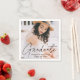 Ajoutez une touche personnalisée à votre fête de remise de diplômes avec nos serviettes de remise de diplômes photo personnalisées! Les serviettes de papier de fin d'études affichent la photo du diplômé avec "Graduate" dans une superposition de script de calligraphie moderne noire. Personnalisez les serviettes photo de diplôme en ajoutant le nom du diplômé et l'année de diplôme.