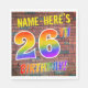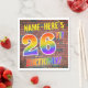 La façade de cette serviette en papier captivante, amusante et passionnante sur le thème de l'anniversaire est dotée d'un nom personnalisé, et le message "26E ANNIVERSAIRE !" avec des lettres ayant un motif dégradé multicolore inspiré par le spectre arc-en-ciel, sur un arrière - plan motif inspiré du mur de briques. L'aspect est inspiré de celui des graffitis ou de l'art de rue dessinés sur un mur. Des serviettes en papier amusantes comme celle-ci pourraient être utilisées à une fête d'anniversaire pour quelqu'un qui célèbre son 26e anniversaire. [~Z0000367]