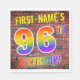La façade de cette serviette en papier vibrante, amusante et attrayante d'anniversaire est dotée d'un nom personnalisé, et le message "96E ANNIVERSAIRE !" avec des lettres ayant un motif dégradé multicolore inspiré du spectre arc-en-ciel, sur un arrière - plan motif inspiré par un mur de briques. Le style s'inspire de celui des graffitis ou de l'art de rue dessinés sur un mur. Des serviettes en papier amusantes comme celle-ci pourraient être utilisées lors d’une fête d’anniversaire en l’honneur du 96e anniversaire de quelqu’un. [~Z0000367]