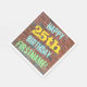 Cette conception amusante de serviette en papier sur le thème de l'anniversaire comporte un message comme "HAPPY 25th BIRTHDAY, FIRSTNAME!", où le nom peut être personnalisé. L'arrière - plan est représenté par un mur en brique composé de briques de couleur rougeâtre. Le texte du message personnalisable comporte des couleurs comme le bleu, le jaune et le vert, et il a un aspect inspiré de celui des graffitis peints. Des serviettes comme celles-ci pourraient être utilisées à une fête d'anniversaire pour quelqu'un qui fête son vingt-cinquième anniversaire. [~Z0000271]