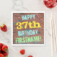 Cette conception amusante de serviette en papier sur le thème de l'anniversaire comporte un message comme "HAPPY 37th BIRTHDAY, FIRSTNAME!", où le nom peut être personnalisé. L'arrière - plan est représenté par un mur en brique composé de briques de couleur rougeâtre. Le texte du message personnalisable comporte des couleurs comme le bleu, le jaune et le vert, et il a un aspect inspiré de celui des graffitis peints. Des serviettes comme celles-ci pourraient être utilisées à une fête d'anniversaire pour quelqu'un qui célèbre son trente-septième anniversaire. [~Z0000271]