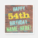 Cette conception amusante de serviette en papier sur le thème de l'anniversaire comporte un message comme "HAPPY 54th BIRTHDAY, NAME-HERE !", où le nom peut être personnalisé. L'arrière - plan est représenté par un mur en brique composé de briques de couleur rougeâtre. Le texte du message personnalisable comporte des couleurs comme le bleu, le jaune et le vert, et il a un aspect inspiré de celui des graffitis peints. Des serviettes comme celles-ci pourraient être utilisées à une fête d'anniversaire pour quelqu'un qui célèbre son cinquante-quatrième anniversaire. [~Z0000271]