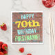 Cette conception amusante de serviette en papier sur le thème de l'anniversaire comporte un message comme "HAPPY 70th BIRTHDAY, FIRSTNAME!", où le nom peut être personnalisé. L'arrière - plan est représenté par un mur en brique composé de briques de couleur rougeâtre. Le texte du message personnalisable comporte des couleurs comme le bleu, le jaune et le vert, et il a un aspect inspiré de celui des graffitis peints. Des serviettes comme celles-ci pourraient être utilisées à une fête d'anniversaire pour quelqu'un qui célèbre son soixante-dixième anniversaire. [~Z0000271]