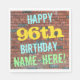 Cette conception amusante de serviette en papier sur le thème de l'anniversaire comporte un message comme "HAPPY 96th BIRTHDAY, NAME-HERE!", où le nom peut être personnalisé. L'arrière - plan est représenté par un mur en brique composé de briques de couleur rougeâtre. Le texte du message personnalisable comporte des couleurs comme le bleu, le jaune et le vert, et il a un aspect inspiré de celui des graffitis peints. Des serviettes comme celles-ci pourraient peut-être être utilisées à une fête d'anniversaire pour quelqu'un qui célèbre son quatre-vingt-seize anniversaire. [~Z0000271]