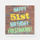 Cette conception amusante de serviette en papier sur le thème de l'anniversaire comporte un message comme "HAPPY 51st BIRTHDAY, FIRSTNAME!", où le nom peut être personnalisé. L'arrière - plan est représenté par un mur en brique composé de briques de couleur rougeâtre. Le texte du message personnalisable comporte des couleurs comme le bleu, le jaune et le vert, et il a un aspect inspiré de celui des graffitis peints. Des serviettes comme celles-ci pourraient être utilisées à une fête d'anniversaire pour quelqu'un qui célèbre son cinquante et unième anniversaire. [~Z0000271]