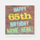 Cette conception amusante de serviette en papier sur le thème de l'anniversaire comporte un message comme "HAPPY 65th BIRTHDAY, NAME-HERE!", où le nom peut être personnalisé. L'arrière - plan est représenté par un mur en brique composé de briques de couleur rougeâtre. Le texte du message personnalisable comporte des couleurs comme le bleu, le jaune et le vert, et il a un aspect inspiré de celui des graffitis peints. Des serviettes comme celles-ci pourraient être utilisées à une fête d'anniversaire pour quelqu'un qui célèbre son soixante-cinquième anniversaire. [~Z0000271]