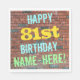 Cette conception amusante de serviette en papier sur le thème de l'anniversaire comporte un message comme "HAPPY 81st BIRTHDAY, NAME-HERE !", où le nom peut être personnalisé. L'arrière - plan est représenté par un mur en brique composé de briques de couleur rougeâtre. Le texte du message personnalisable comporte des couleurs comme le bleu, le jaune et le vert, et il a un aspect inspiré de celui des graffitis peints. Des serviettes comme celles-ci pourraient peut-être être utilisées à une fête d'anniversaire pour quelqu'un qui célèbre son quatre-vingt-premier anniversaire. [~Z0000271]