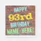 Cette conception amusante de serviette en papier sur le thème de l'anniversaire comporte un message comme "HAPPY 93rd BIRTHDAY, NAME-HERE!", où le nom peut être personnalisé. L'arrière - plan est représenté par un mur en brique composé de briques de couleur rougeâtre. Le texte du message personnalisable comporte des couleurs comme le bleu, le jaune et le vert, et il a un aspect inspiré de celui des graffitis peints. Des serviettes comme celles-ci pourraient peut-être être utilisées à une fête d'anniversaire pour quelqu'un qui célèbre son quatre-vingt-treize anniversaire. [~Z0000271]
