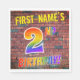 La façade de cette serviette en papier amusante, excitante et attrayante, sur le thème de l'anniversaire, porte un nom personnalisé, et le message "2E ANNIVERSAIRE !" avec des lettres ayant un motif multicolore inspiré du spectre arc-en-ciel, sur un arrière - plan motif inspiré par un mur de briques. Le style s'inspire de celui des graffitis ou de l'art de rue dessinés sur un mur. Des serviettes en papier amusantes comme celle-ci pourraient être utilisées lors d’une fête d’anniversaire pour commémorer le 2e anniversaire de quelqu’un. [~Z0000367]