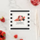 Cette élégante serviette en papier pour mariage présente un grand chapeau rouge derby avec des roses et un nœud papillon noir sur un fond blanc à rayures noires. Personnalisez-le selon vos besoins. Vous pouvez trouver d'autres produits assortis dans ma boutique.