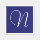 Serviette En Papier Grand monogramme blanc élégant | Bleu minuit