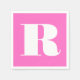 Serviette En Papier Grand monogramme blanc élégant | Rose néon