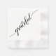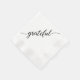 Ajoutez cette touche de sophistication moderne à vos serviettes. Le mot "Grateful" dans une police de style manuscrite de script simple avec de longues queues. Un look tendance et chic. Essayez-le pour des fêtes spéciales comme Thanksgiving et Noël.