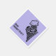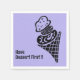 Prenez d'abord le dessert sur une serviette en lavande avec un joli dessin de style gravure sur bois d'un délicieux cornet de glace.