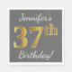 Serviette En Papier Grey, Faux Gold 37th Birthday + Nom personnalisé