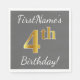 Serviette En Papier Grey, Faux Gold 4th Birday + Nom personnalisé