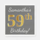 Ce design simple de serviette en papier comporte un message comme "59e anniversaire de Samantha !", avec le "59e" ayant un aspect faux/imitation or, sur un arrière - plan gris (gris) coloré. Le nom peut être customisé. Il pourrait être utilisé à une fête d'anniversaire pour quelqu'un qui célèbre son cinquante-neuvième anniversaire. [~Z0000190]