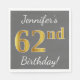 Serviette En Papier Grey, Faux Gold 62e anniversaire + Nom personnalis