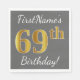 Serviette En Papier Grey, Faux Gold 69e anniversaire + Nom personnalis