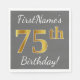 Cette conception simple de serviette en papier comporte un message comme "75e anniversaire de FirstName!", avec le "75e" ayant une apparence fausse/imitation or, sur un arrière - plan gris (gris). Le nom peut être personnalisé. Il pourrait être utilisé lors d'une fête d'anniversaire pour quelqu'un qui célèbre son soixante-quinzième anniversaire. [~Z0000190]