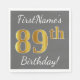 Serviette En Papier Grey, Faux Gold 89e anniversaire + Nom personnalis