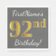 Serviette En Papier Grey, Faux Gold 92e anniversaire + Nom personnalis