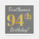 Serviette En Papier Grey, Faux Gold 94e anniversaire + Nom personnalis