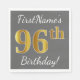 Serviette En Papier Grey, Faux Gold 96e anniversaire + Nom personnalis
