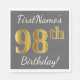 Serviette En Papier Grey, Faux Gold 98e anniversaire + Nom personnalis