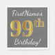 Serviette En Papier Grey, Faux Gold 99e anniversaire + Nom personnalis
