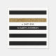 Personnalisez ces serviettes en papier motif à rayures larges horizontales modernes en noir et blanc avec une bande en parties scintillant dorée en ajoutant le nom de la fille du parti. Ce motif à rayures graphiques tendance est parfait pour le fashionista chic. Image imprimée plate, PAS de parties scintillant réelle.