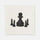 Grand pion d'échecs noir entouré de quatre petits rois d'échecs isolés contre l'arrière - plan blanc. Prendre la grandeur pour la grandeur.