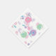 Ensemble de serviettes en papier avec un design japonais de grues en papier origami et des fleurs en rose, violet, vert et bleu, contre un arrière - plan de texture papier.