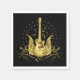 guitare dorée à l'Imaginaire avec ailes, détails défilants et notes musicales.