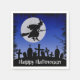 Illustration d'Halloween avec décoration de sorcière et de pierre gravée à pleine lune dans cadre de grunge